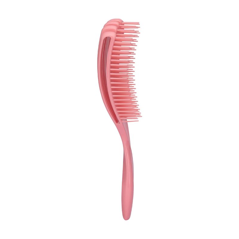 Com pinos macios e flexíveis, ele desliza facilmente pelas mechas, ajudando a desembaraçar, definir e valorizar o movimento natural do cabelo.