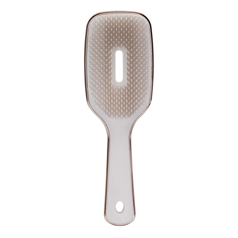 Escova de cabelo para desembaraçar todos os tipos de cabelo, secos ou molhados. Sua estrutura possui uma abertura que permite a passagem de ar e facilita a secagem do cabelo. Cerdas flexíveis de dupla altura com pontas arredondadas que não agridem o couro cabeludo e deslizam pelas mechas minimizando a quebra dos fios.