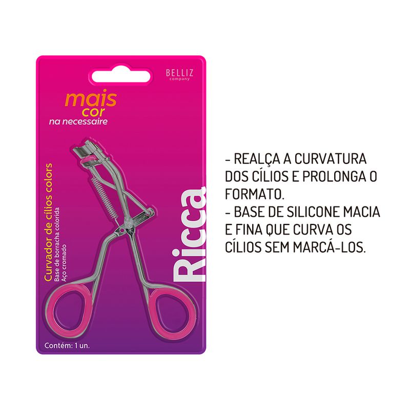 Curvador de cílios de metal com borrachas de silicone que evitam a quebra dos cílios;
