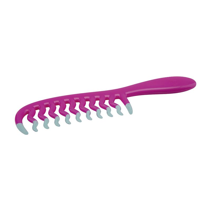 Pente especialmente desenvolvido para desembaraçar o cabelo cacheado. Cachos bem definidos, com redução do frizz. Características: Os dentes ondulados são dimensionados e espaçados especialmente para cabelos cacheados, ele define e realça naturalmente os cachos enquanto desembaraça. Pode ser usado em cabelos secos, mas preferencialmente nos cabelos úmidos ou molhados. O cabo é anatômico proporciona maior firmeza e controle durante o manuseio.